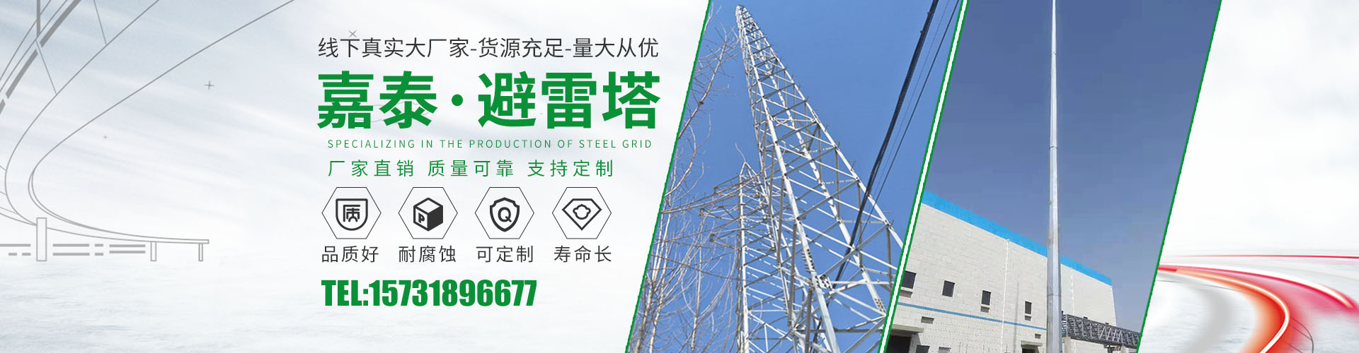 衡水嘉泰鋼結(jié)構(gòu)有限公司位于鐵塔制造之鄉(xiāng)-衡水市景縣廣川經(jīng)濟(jì)開發(fā)區(qū),石德、京九鐵路交匯處,距北京、天津、石家莊、濟(jì)南均在2小 時交通圈內(nèi),交通便利。公司主要產(chǎn)品有:避雷塔、監(jiān)控塔、瞭望塔、消防訓(xùn)練塔、電力架構(gòu)、樓頂工藝塔、廣播電視塔、煙囪塔、測風(fēng)塔 、電力塔、單管塔、雷達(dá)塔、仿生樹塔、氣象觀測塔、路燈桿,一體化基站、ETC龍門架等,是一家集設(shè)計(jì),生產(chǎn),運(yùn)輸,安裝,維護(hù)為一體的廠家。主要服務(wù)于鐵塔公司、通信三大運(yùn)營商、國防通訊,鐵路及森 ......